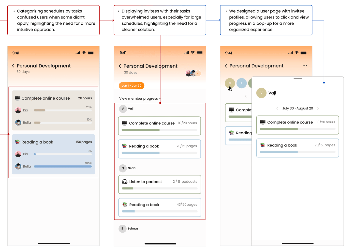 We weren’t sure how to integrate shared Flexidules into the homepage—should they be separate or combined with personal ones? To find the best approach, we collaborated with users to refine the design and improve filtering. Their feedback made the homepage clearer and more useful, making it easier to track and plan with others.
