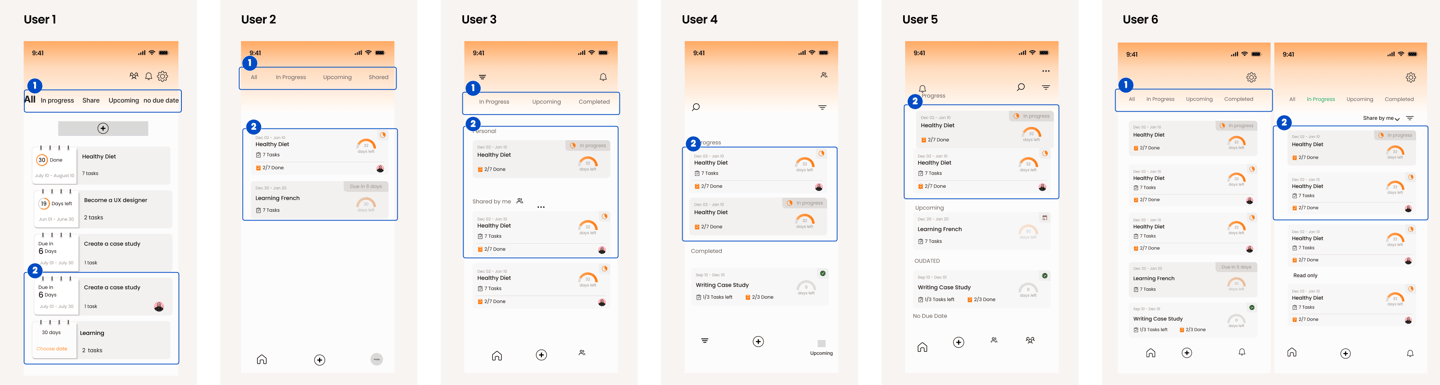 They wanted quick access to filters (In Progress, Upcoming, Overdue) placed horizontally at the top.