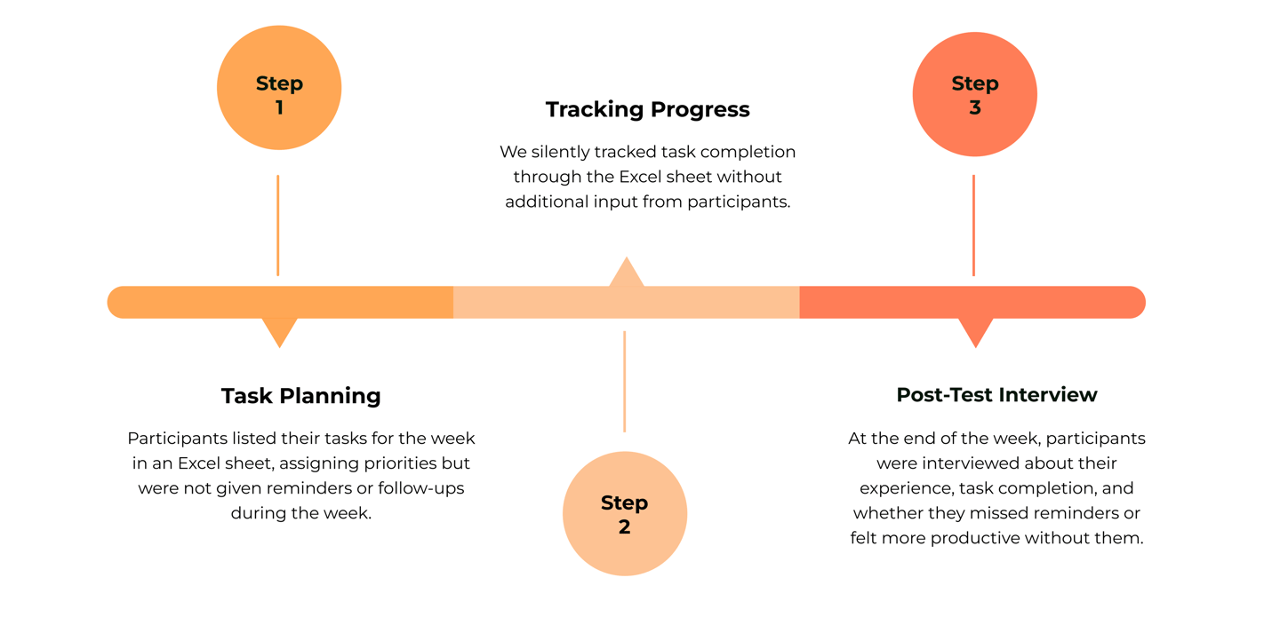 We tested if flexibility helps users complete tasks or leads to procrastination. For one week, we observed users who disliked rigid reminders. Here’s how we conducted the test: