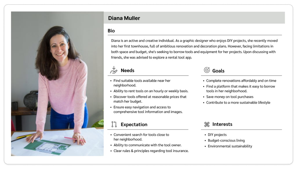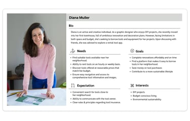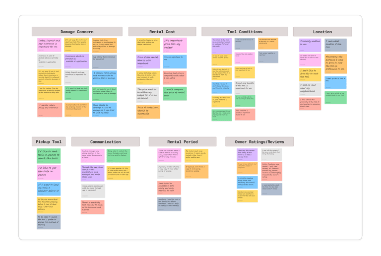 In the beginning of our journey we decided to educate ourselves to better understand who we are designing for and how users are currently rent/lend their tools, so we conducted an initial interview with 8 individuals. To find the interviewees we posted in our neighborhood Facebook group. We aimed to identify their pain points and crucial factors involved in these processes by inquiring about their past experiences and preferred locations for borrowing tools.