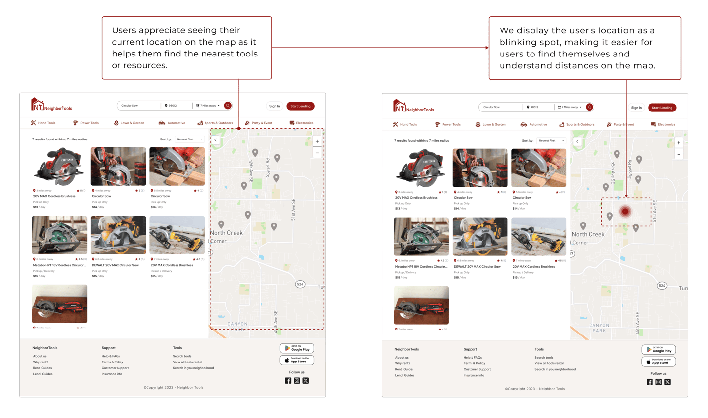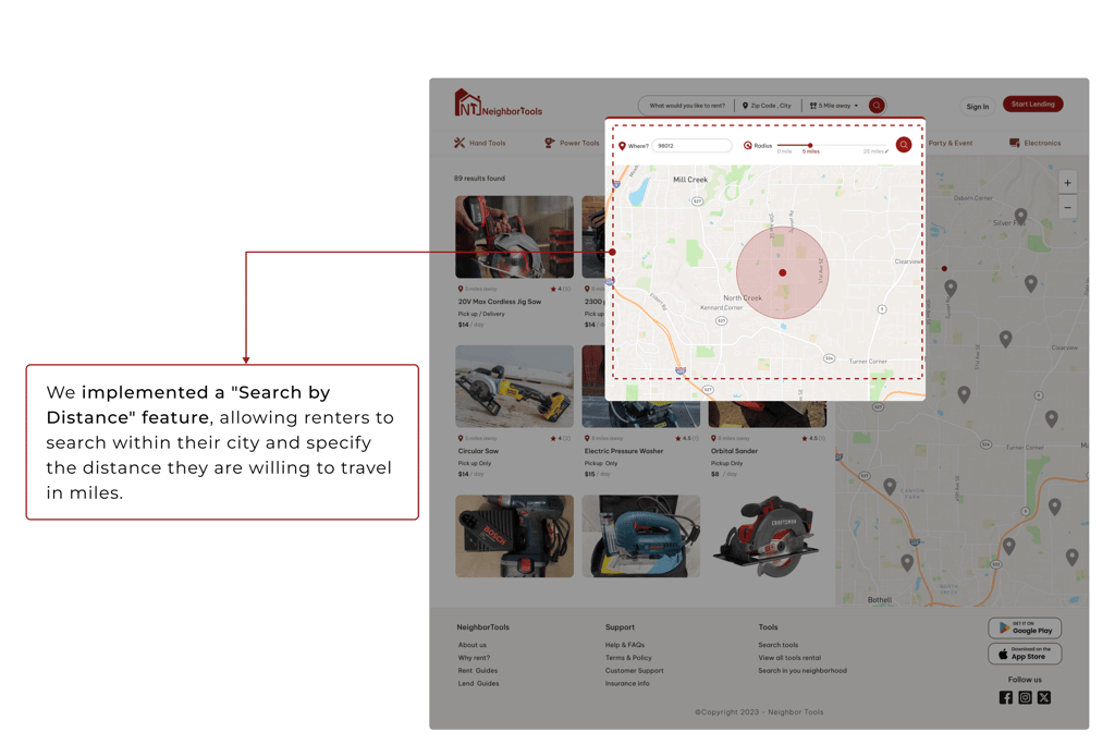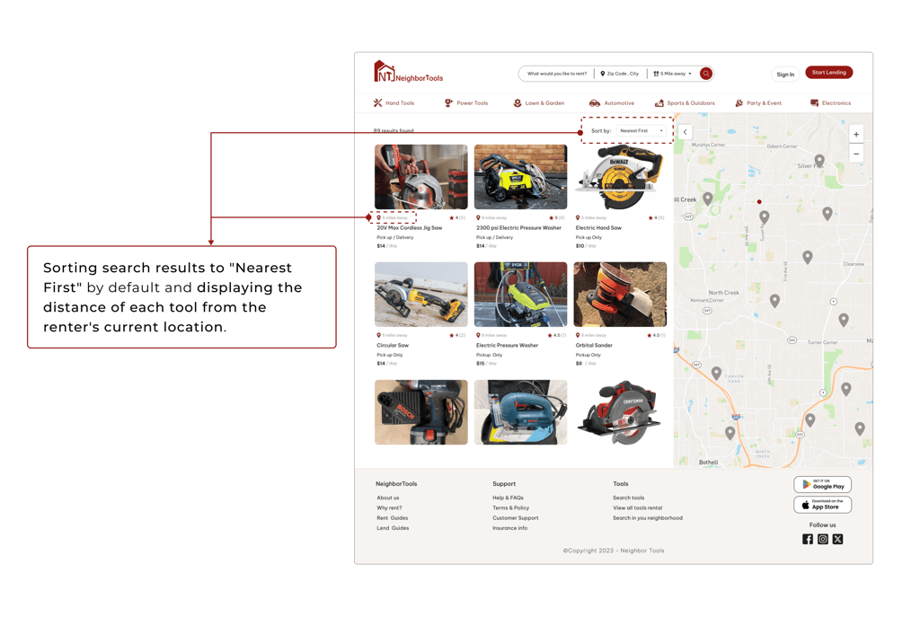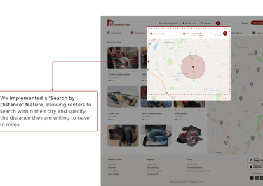 Proximity is an important factor for renters. Most of the users don’t like to travel far when renting a tool.