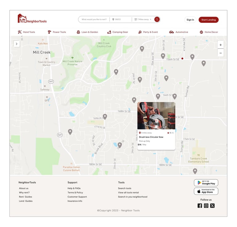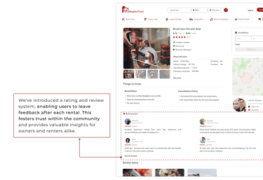 We developed a user-friendly website that connects neighbors for seamless tool sharing. Our platform ensures transparent pricing, easy booking, and reliable tool condition descriptions, eliminating the hassle of traditional rental stores. Users can conveniently browse nearby tools, check availability in real-time, and enjoy the affordability and accessibility of shared resources within their community.