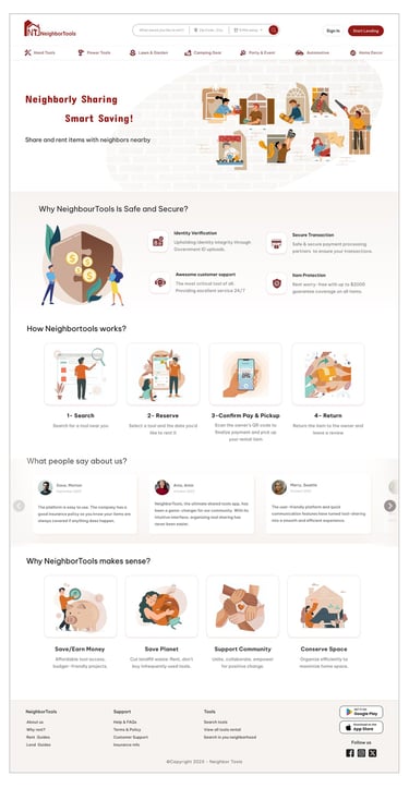 NeighborTools connects tool owners with renters in a safe, secure peer-to-peer sharing platform. Owners make money from unused tools, while renters save by avoiding purchases and supporting local communities.