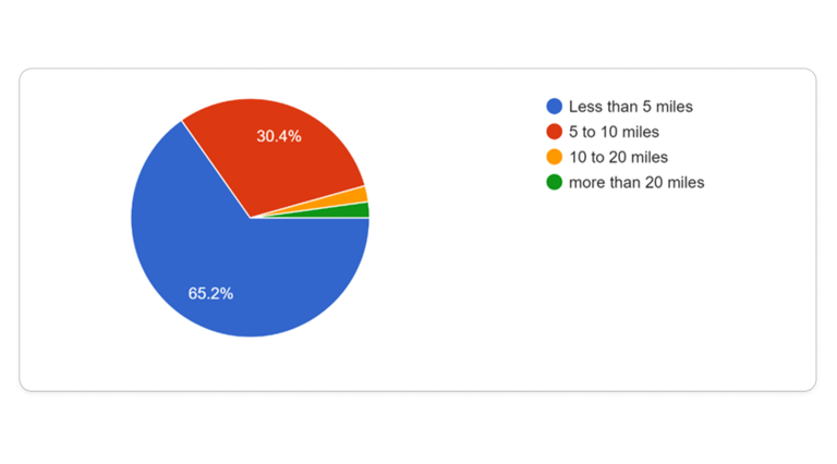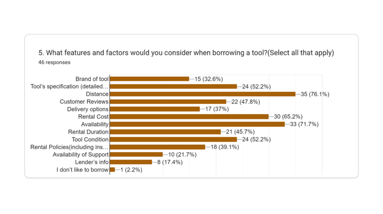 76% of participants consider distance in borrowing a tool and 65% of them preferred less than 5 miles traveling distance.